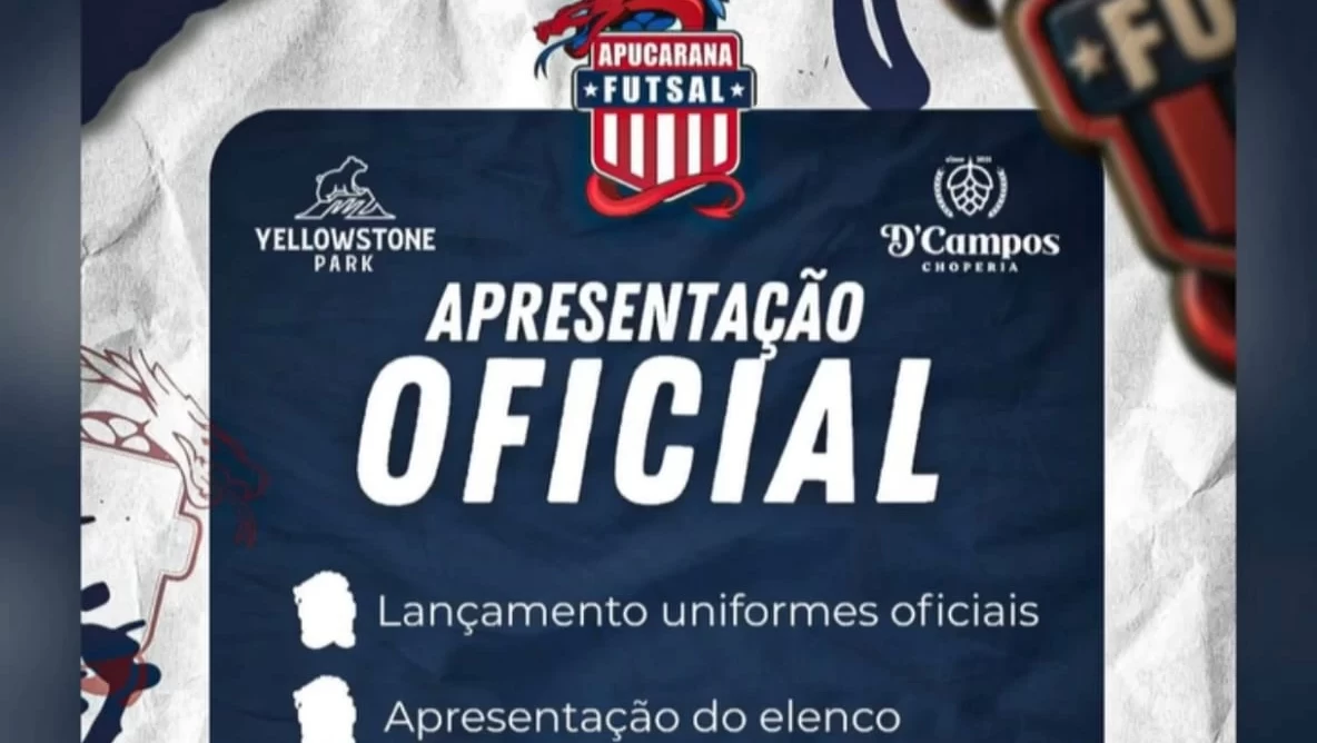 Será realizada nesta sexta-feira (20/02), a partir das 19 horas, no Yellowstone Park, na rua Doutor Osvaldo Cruz, a apresentação do elenco e dos integrantes da comissão técnica do Apucarana Futsal, clube que se prepara para o Campeonato Paranaense da Série Prata 2026. Na ocasião, também haverá o lançamento dos uniformes oficiais da equipe, com a entrada no evento sendo gratuita.