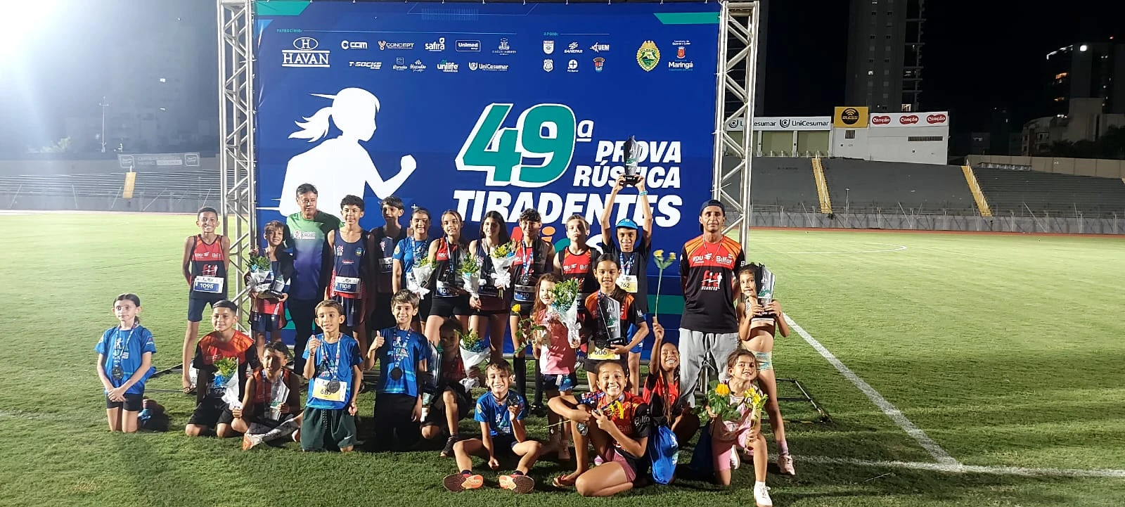 A equipe das categorias menores de atletismo da Secretaria Municipal de Esportes da Prefeitura de Apucarana conseguiu bons resultados durante a 49ª edição Prova Rústica Tiradentes Kids, realizada no último sábado (18/04), na pista do Estádio Regional Willie Davids.